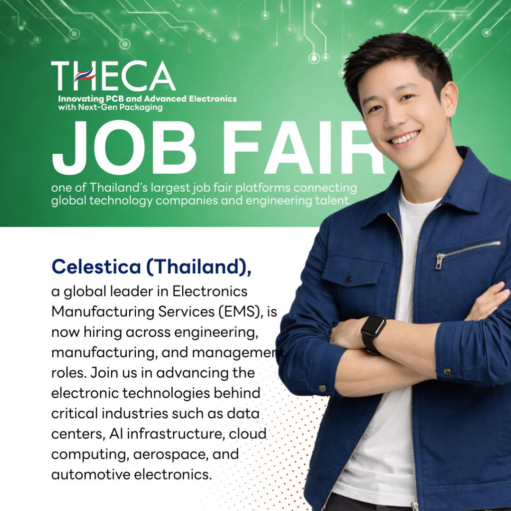 กิจกรรมการรับสมัครครั้งนี้เป็นส่วนหนึ่งของ THECA Job Fair ซึ่งจะจัดขึ้นภายในงาน Thailand Electronics Circuit Asia (THECA) งานแสดงเทคโนโลยีและอุตสาหกรรมอิเล็กทรอนิกส์ระดับนานาชาติ ที่รวบรวม บริษัทชั้นนำด้าน PCB, PCBA และ Advanced Electronics จากทั่วโลก