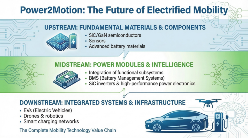 • Electric vehicles and advanced mobility systems, including EVs, e-motorcycles, drones, robotics, and autonomous vehicles
