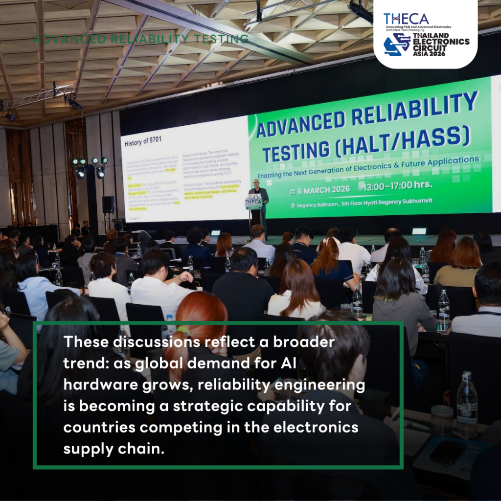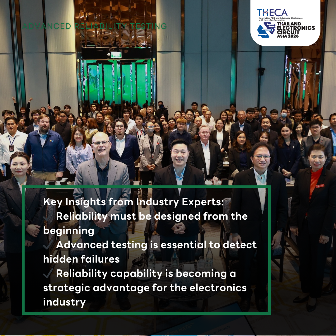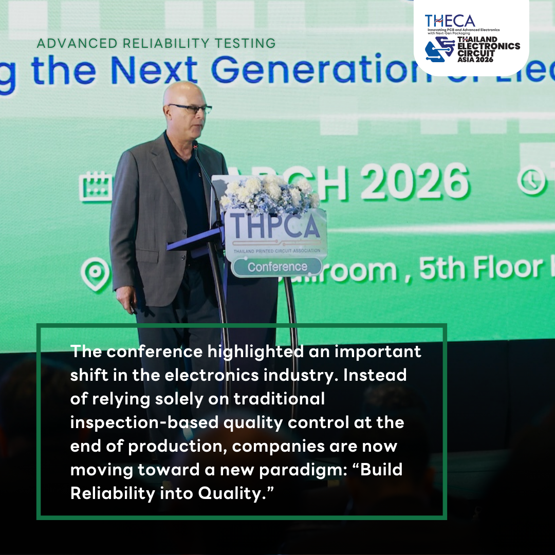 The Thailand Printed Circuit Association (THPCA) recently hosted an international technical conference on “Advanced Reliability Testing (HALT/HASS)”, bringing together global experts, engineers, and researchers to exchange insights on reliability engineering for next-generation electronic systems.